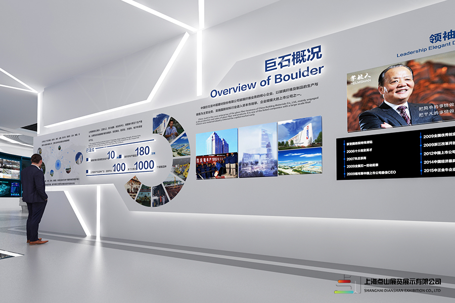 主題突出,特色鮮明。充分展現(xiàn)巨石文化、戰(zhàn)略方向,體現(xiàn)大氣、穩(wěn)重、明亮的整體色彩搭配和空間感受。裝修材料要多運(yùn)用玻纖增強(qiáng)復(fù)合材料,將部分展品嵌入裝飾中,做到美觀且實(shí)用。跳出原有展廳展陳框架,要有前瞻性和創(chuàng)新性。