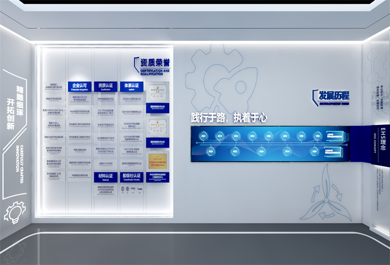 點(diǎn)山展示策劃設(shè)計(jì)施工一體化服務(wù)—整個(gè)展館材料運(yùn)用金屬、玻璃等現(xiàn)代材質(zhì),映射出企業(yè)專屬氣質(zhì)。