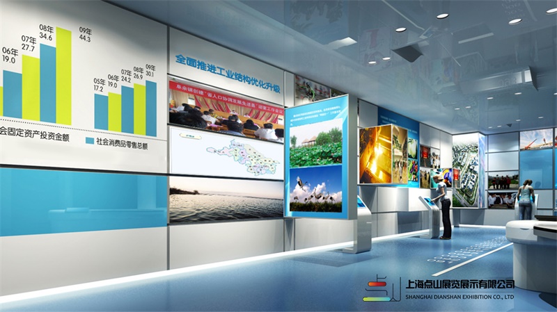 靖邊規(guī)劃展館策劃開(kāi)始就采用大空間設(shè)計(jì),序廳采用暖色調(diào),讓參觀者體驗(yàn)到一種關(guān)懷,此展館共分多個(gè)展區(qū),科技含量高、互動(dòng)形式多、規(guī)劃標(biāo)準(zhǔn)比較高,在采取展板、模型等傳統(tǒng)展示手段的基礎(chǔ)上,大量采用聲、光、電、影視等生動(dòng)形象的手法,將多通道投影等現(xiàn)代聲光電技術(shù) 融入展示環(huán)節(jié),將縣域版圖面積高度濃縮,真實(shí)再現(xiàn)了當(dāng)?shù)氐陌l(fā)展歷程、生態(tài)建設(shè)、社會(huì)責(zé)任、城市形態(tài)、重點(diǎn)企業(yè)和遠(yuǎn)景規(guī)劃,全面展示了靖邊當(dāng)?shù)氐囊?guī)劃、建設(shè)和發(fā)展成就。