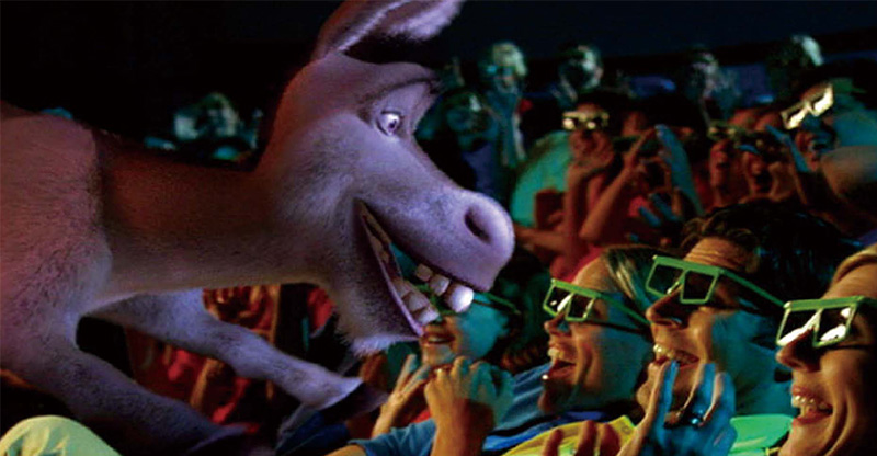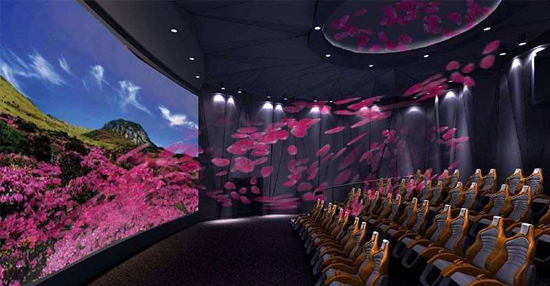 4D影院是從傳統(tǒng)的3D影院基礎(chǔ)上發(fā)展而來,具有主題突出、科技含量高、效果逼真、畫面沖擊性強等特點和優(yōu)勢。人們不僅將震動、墜落、吹風(fēng)、噴水、撓癢、掃腿等特技引入3D影院,還根據(jù)影片的情景精心設(shè)計出煙霧、雨、光電、氣泡、氣味等效果,觀眾在觀看4D影片時能夠獲得視覺、聽覺、觸覺、嗅覺等全方位感受,形成了一種獨特的體驗。