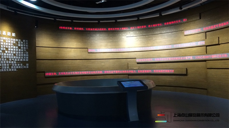 整個展館分為三個展區(qū),第一個展區(qū)主題人與自然、第二個展區(qū)主題和諧社會、第三個展區(qū)生態(tài)崇明