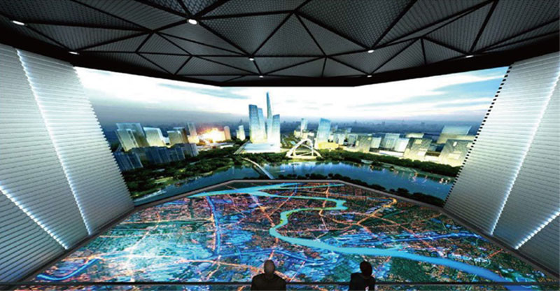 數(shù)字沙盤主要分為兩種:一是在原來(lái)傳統(tǒng)的沙盤模型上增加多媒體投影機(jī)系統(tǒng);二是純?nèi)S數(shù)字沙盤,一般有互動(dòng)功能,投影面一般為特殊處理的白色或灰色幕面,設(shè)有實(shí)體沙盤模型。通過(guò)聲、光、電、圖像、三維動(dòng)畫以及計(jì)算機(jī)程控技術(shù)與實(shí)體模型相融合。